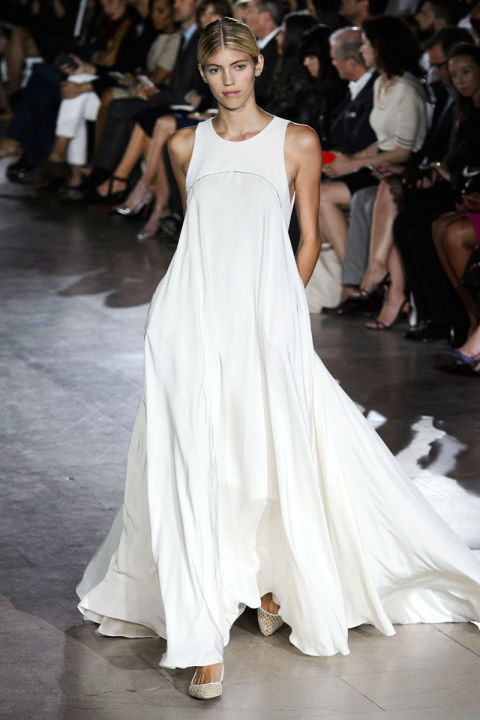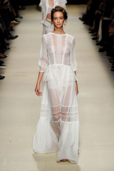 With Fashion week happening around the globe, we can't help but marvel at the stunning ready-to-wear spring 2016 collections and reimagine some of the looks as bridal gowns. Here, we've included 10 gorgeous, floor-sweeping gowns from the most esteemed names in fashion. From Marchesa's sheer feather bodice gown and Zac Posen's bohemian sheath to Jenny Packham's sequin silver dress and Monique Lhuillier's fun pop of color atop a simple slip gown, we are inspired for an untraditional season of wedding fashion.